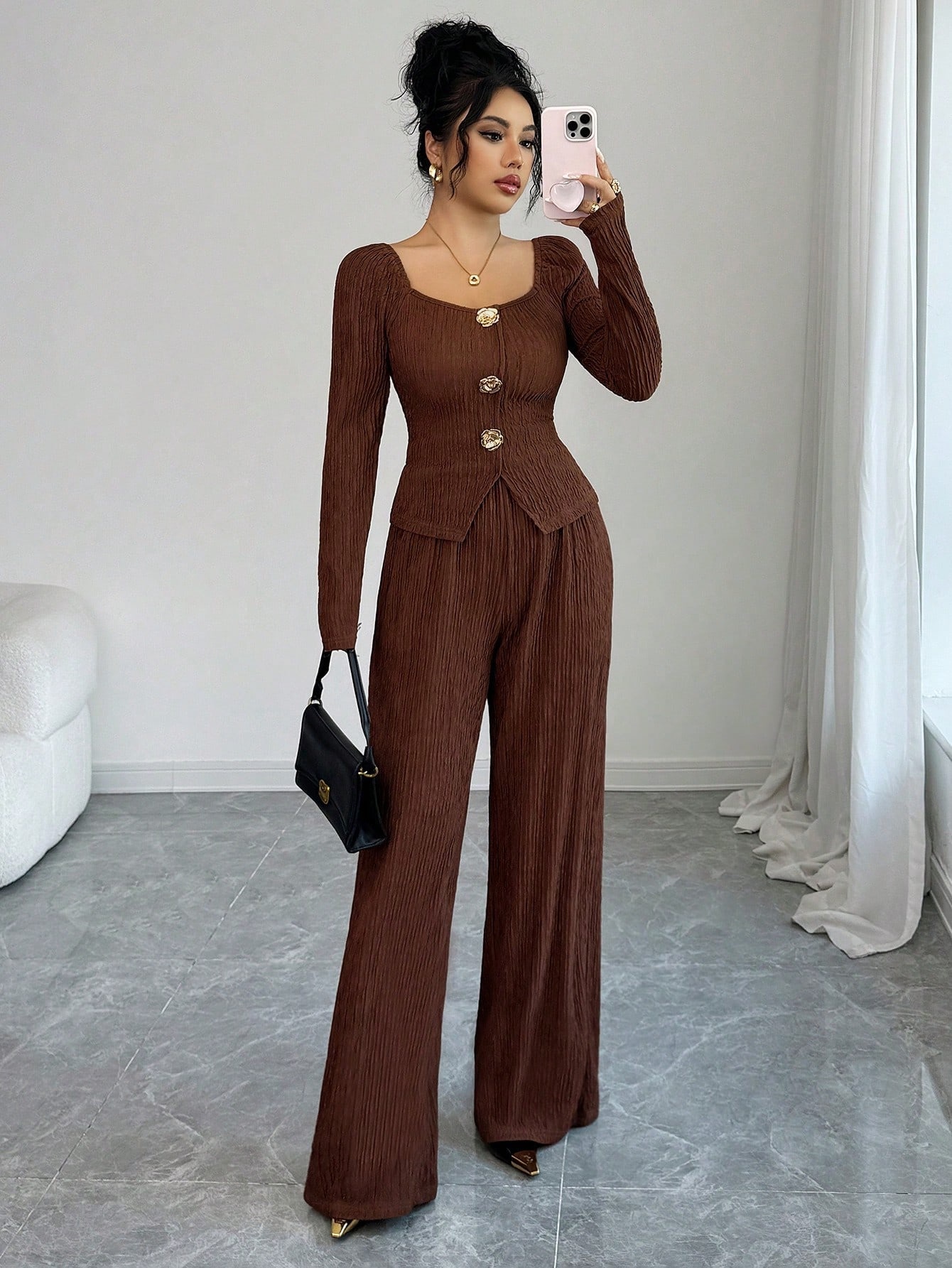 Metal Rose Buckle Slim-Fit Fashionable Womens Suit