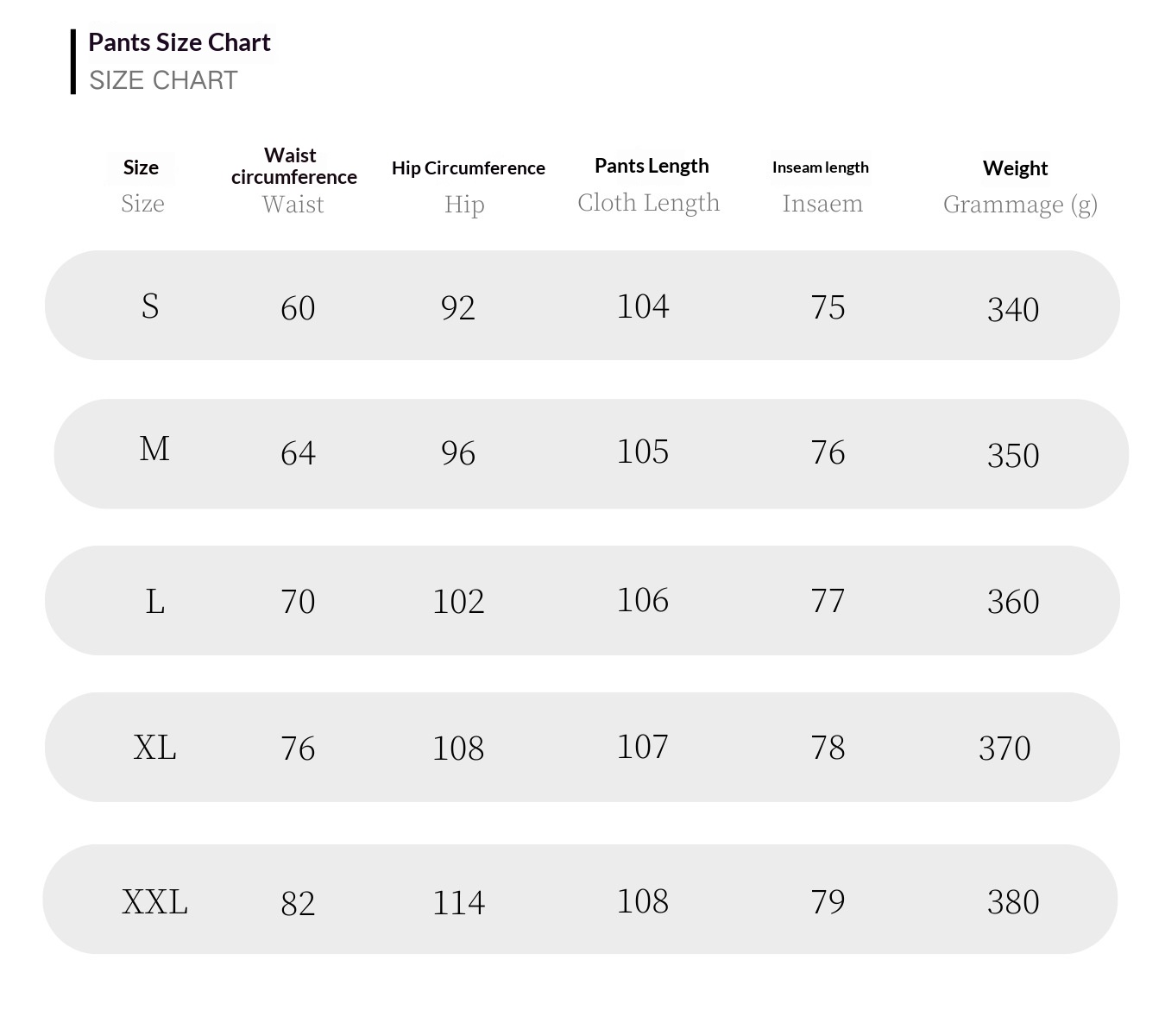 Sizes: S, M, L, XL, XXL